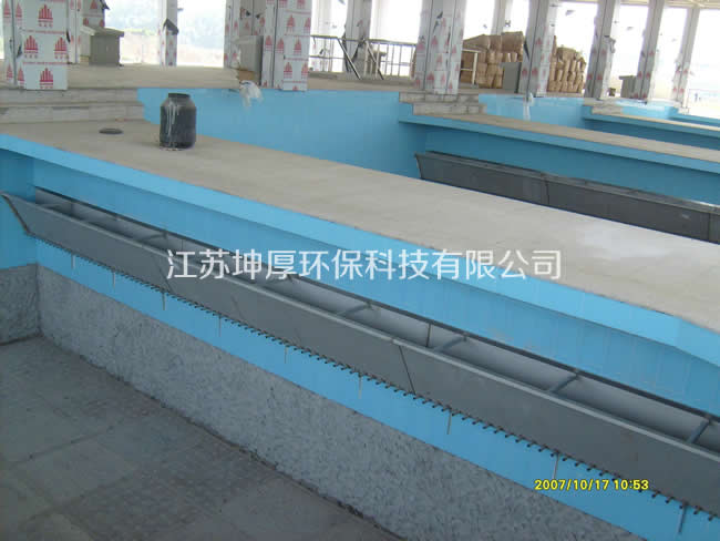 反硝化深床滤池由过滤介质(滤料层)、承托层、配水布气系统、出水收集系统、中央控制系统及旁路的投加碳源系统组成。